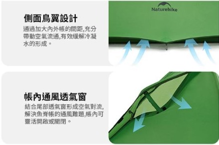 此帳為雙層設計,需注意通風,降低反潮可能性。